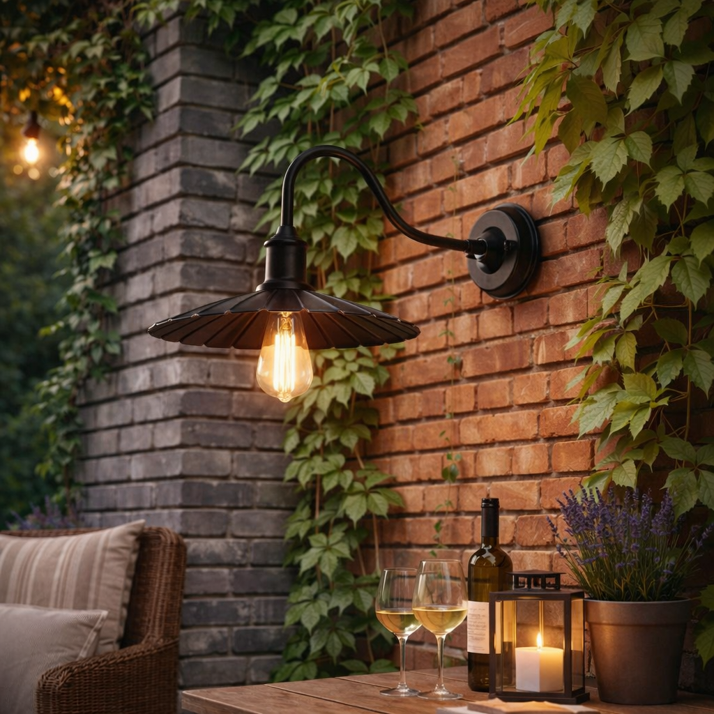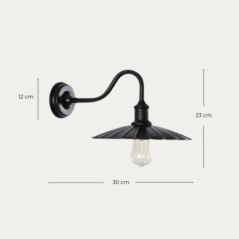 Son bras courbé et son abat-jour nervuré rappellent les luminaires d’antan, ceux qui habillaient les façades avec discrétion et élégance.