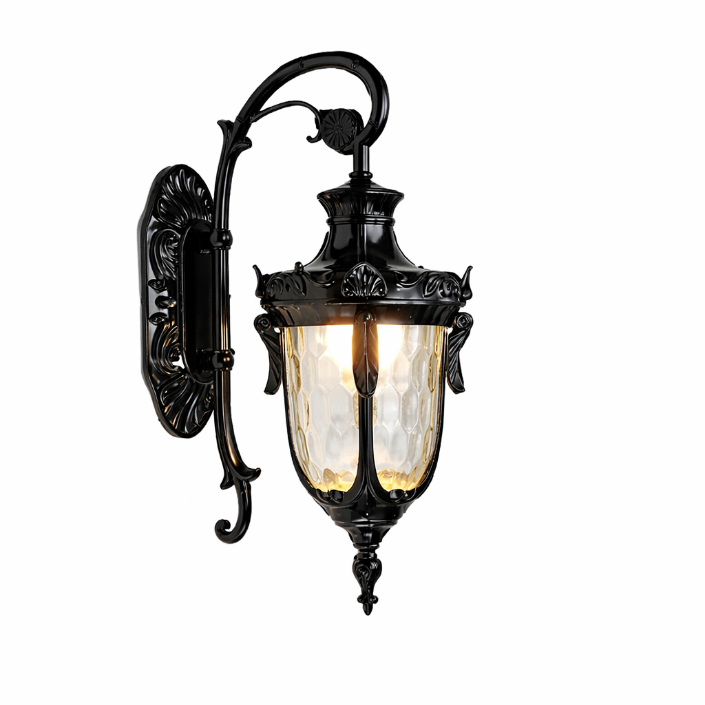 Inspirée des lanternes traditionnelles en fer forgé, cette applique murale apporte immédiatement du caractère à une façade, une entrée ou une allée. Sa silhouette travaillée diffuse une lumière chaude et enveloppante, idéale pour créer une atmosphère accueillante dès la nuit tombée.