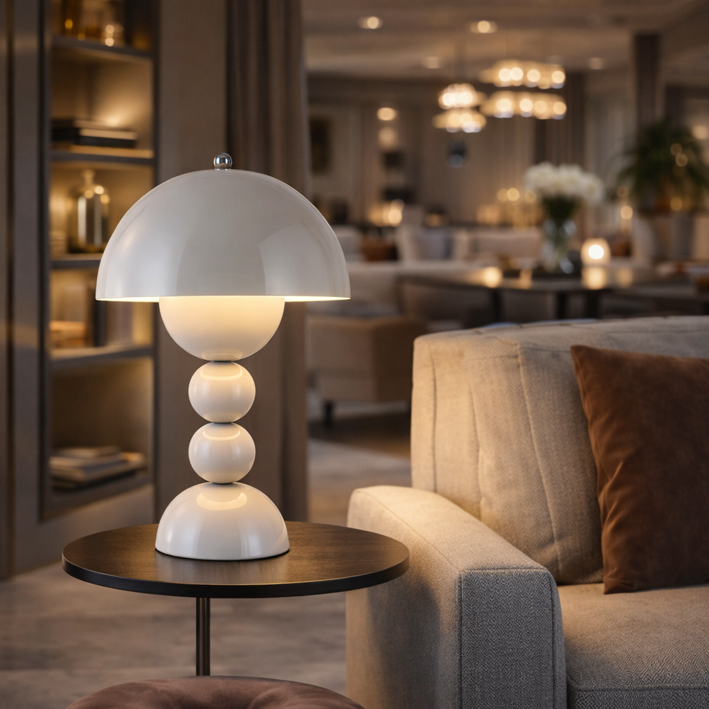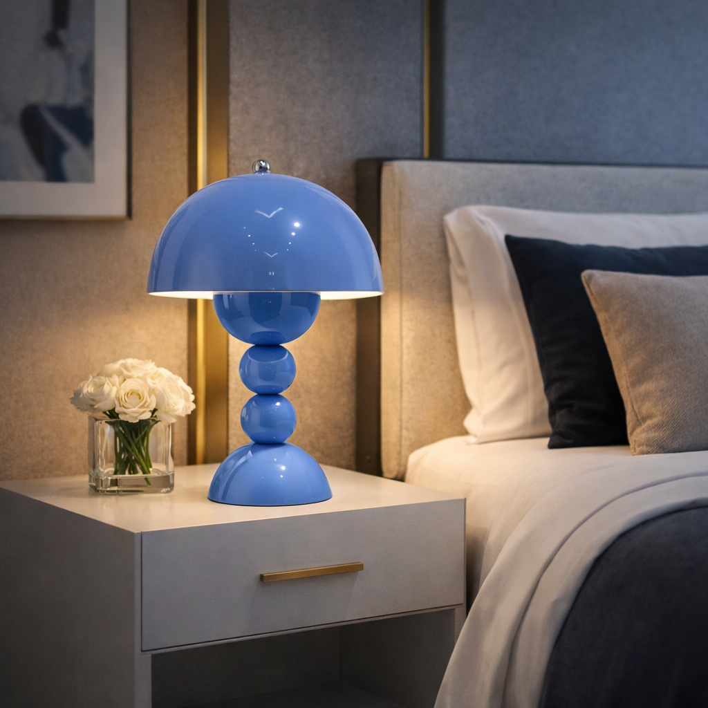 La lumière de ZEINA™ se diffuse avec délicatesse sous son dôme, enveloppant l’environnement d’une atmosphère chaleureuse et apaisante. Elle accompagne les moments de calme, de lecture ou de conversation avec une douceur parfaitement maîtrisée.