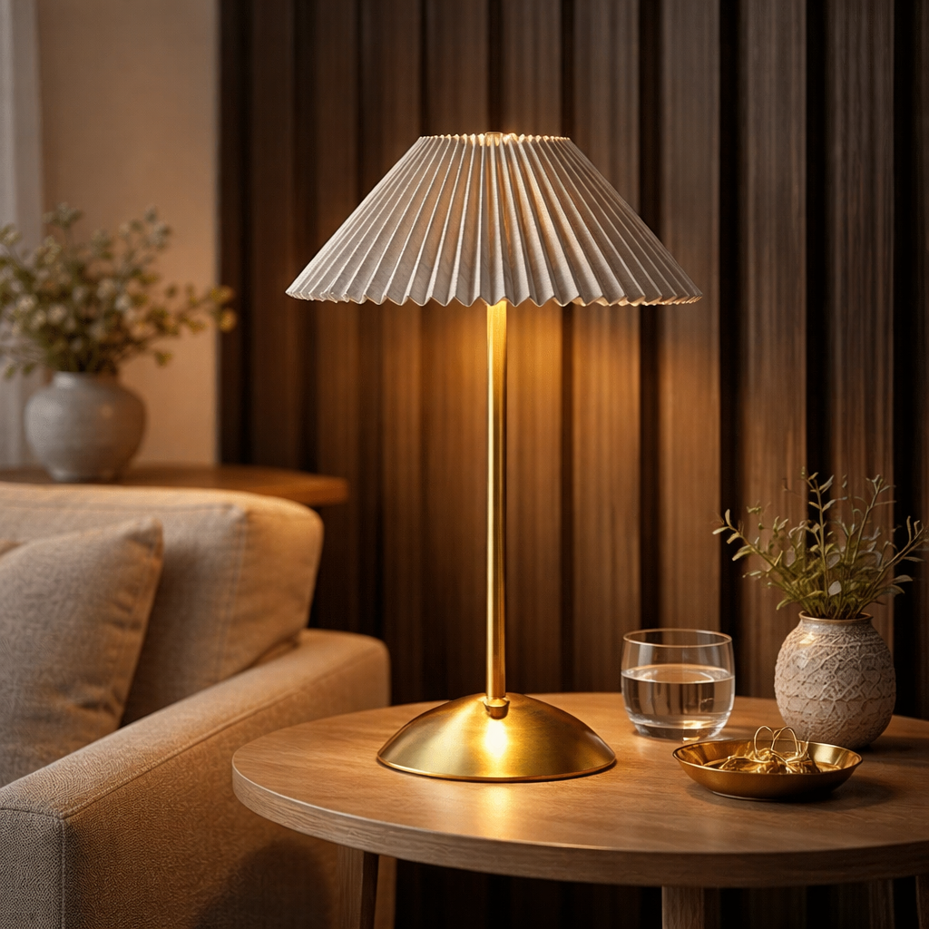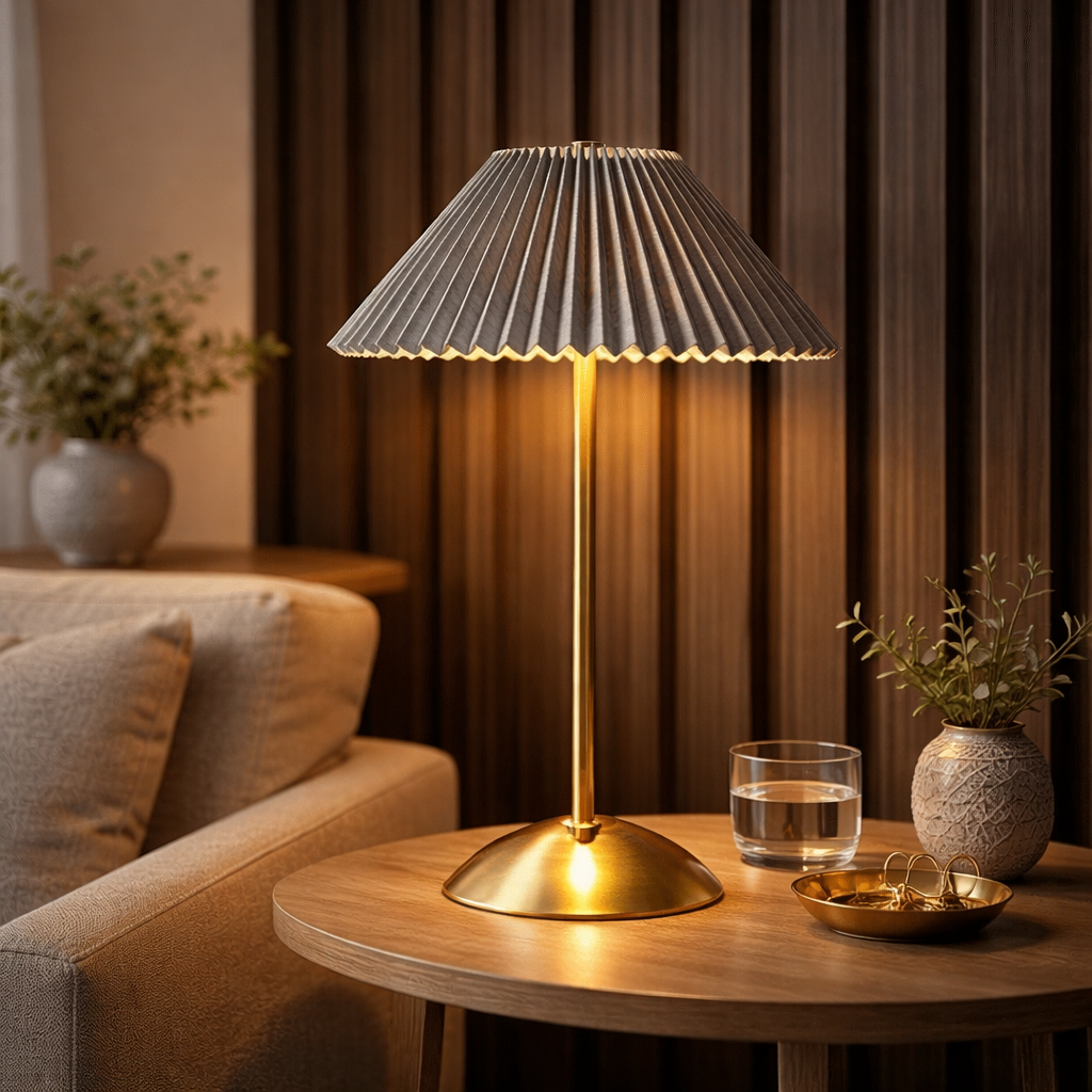 Un éclairage feutré qui enveloppe la pièce sans l’éblouir, idéal pour les instants de calme, de lecture ou de conversation. La lumière glisse le long des plis de l’abat-jour, révélant toute la finesse du design.